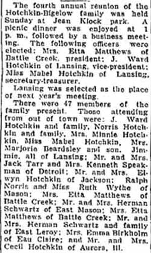 Newspaper report of the 4th Hotchkin Reunion,