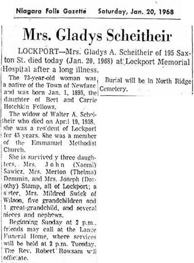 Gladys Fellows Scheitheir Death
