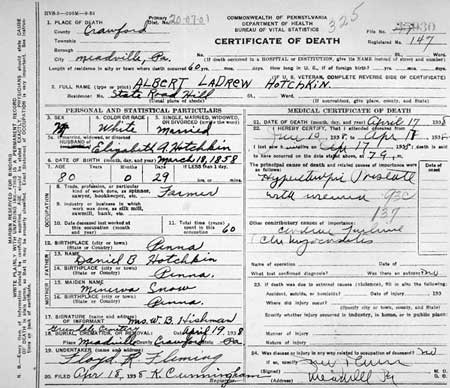 Albert Ladrew (Drew) Hotchkin Death Certificate